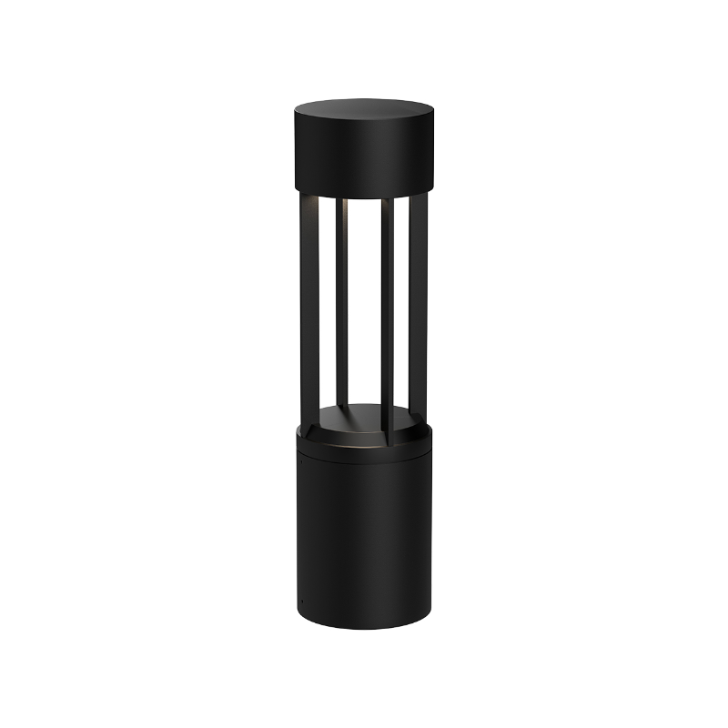 Architecturally designed high-power LED exterior bollard fixture. This die-cast aluminum cylinder with a powder-coated finish features a high top and cage design with a radiant downlight to illuminate walkways and paths effectively.