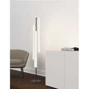 Frosted glass cylinders, available as a single or in multiples, are composed around an aluminum die-cast body, emitting an even 360Β° glow of ambient light. The Gramercy standing fixtures feature a touch dimmer and a black finish