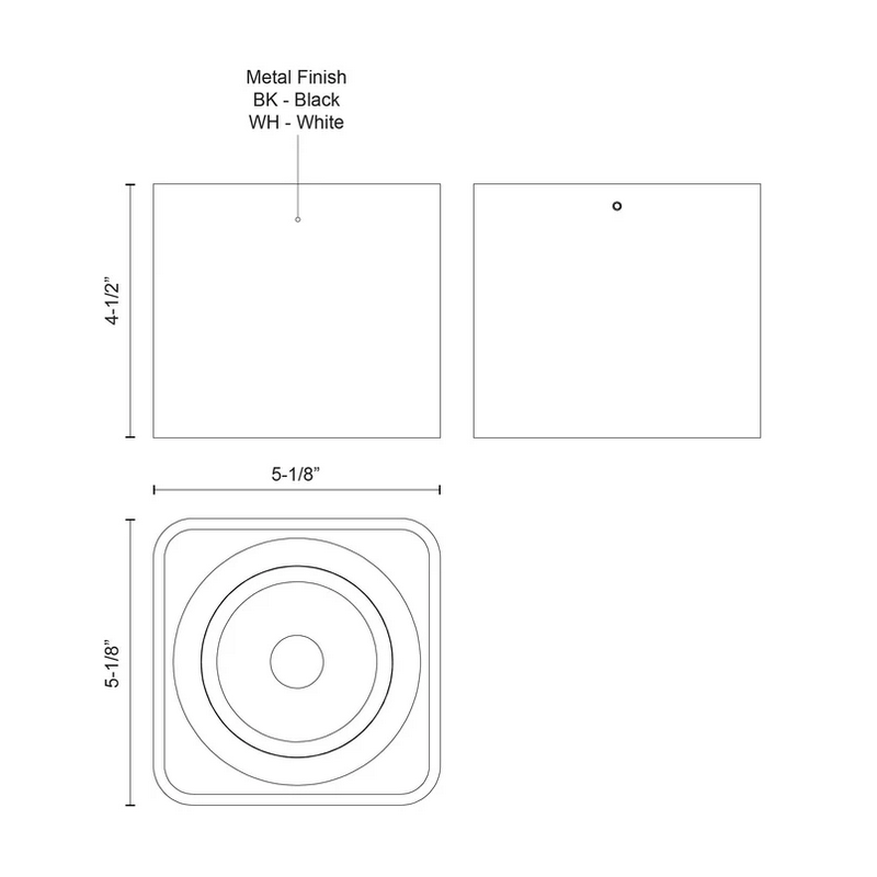 LED flush mount made from heavy gauge cast aluminum painted white or black, square cylinder shaped. Shines through a high-precision optical lens down into the room.