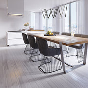 The primary component of the Chute series is a slim round rod illuminated along the entirety of its length. The opal silicon diffuser radiates soft LED light outward from the axis of the lamps and completes the cylindrical shape. Used in angled repetition the fixture becomes increasingly energetic creating a field of radiant floating lines. Individual height adjustment of the various linear elements allows for user customization and an abundance of potential compositions. Available in several sizes and multiple finishes.