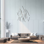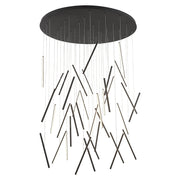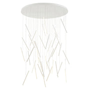 The primary component of the Chute series is a slim round rod illuminated along the entirety of its length. The opal silicon diffuser radiates soft LED light outward from the axis of the lamps and completes the cylindrical shape. Used in angled repetition the fixture becomes increasingly energetic creating a field of radiant floating lines. Individual height adjustment of the various linear elements allows for user customization and an abundance of potential compositions. Available in several sizes and multiple finishes.
