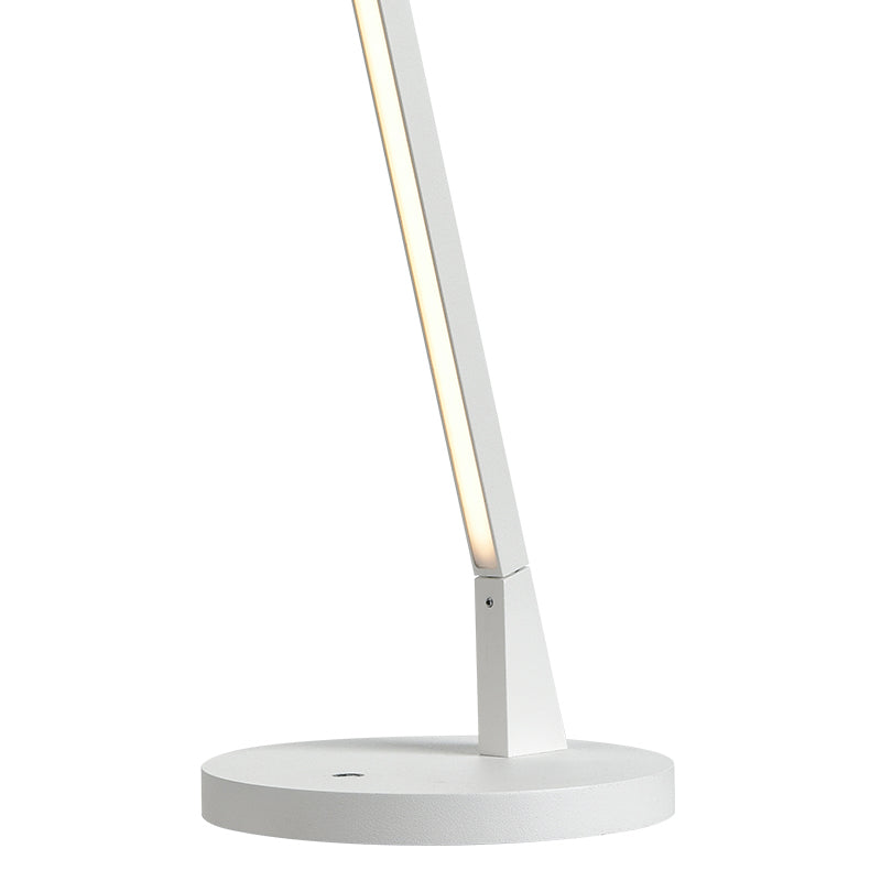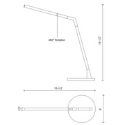 A thin angular line forms the gesture synonymous with the MITER floor and table lamp series. Employed within the top arm of the diminutive square profile is a linear LED source capped by an inset opal diffuser providing uniform soft illumination. The precisely machined aluminum body conceals further functionality with simple power connectors to enable easy assembly and added rotational adjustment. A handsome circular dimmer adorns the structure.