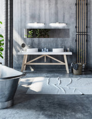 With its bold rectilinear forms and asymmetrical design, the Soho vanity is reminiscent of a Cubist or Art Deco aesthetic. The extruded square diffuser and substantial end caps create one continuous bar emitting the LED light. Available in three curated finishes the multiple geometric forms of the light will augment the existing interior architecture.