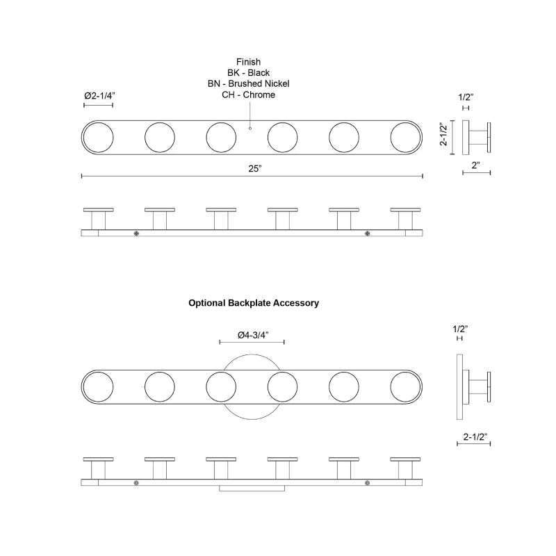 With architectural rods of illumination paired with strong Black, Chrome, and Polished Nickel metal finishes, this collection makes a subtle, yet bold statement in any size bathroom setting.
