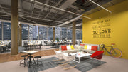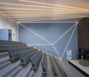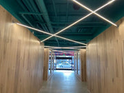 Lazer Line is a Direct and/or Indirect LED Lighting System that provides general illumination for architectural applications. Slim Turnbuckles and anchors can be mounted wall to wall or ceiling to floor or ceiling to wall. Turnbuckles allow Lazer Line to be positioned 0-60º relative to the mounting surface, creating a 3-dimensional look that is as functional as it is visually interesting. Feed power from one or both ends for longer lengths. Mounts to standard 4" square junction box with round plaster ring. Paint canopy to blend into the surface for a seamless look. For compact shipment and storage, Lazer Line coils like a retractable tape measure. When uncoiled, Lazer Line becomes a 0.5" wide stainless steel channel that spans opposing surfaces. The field-cuttable channel allows continual lengths up to 60' with power feeds at each end. Includes a 5 year pro-rated warranty. For custom designs and quotes, email: customerservices@lbclighting.com