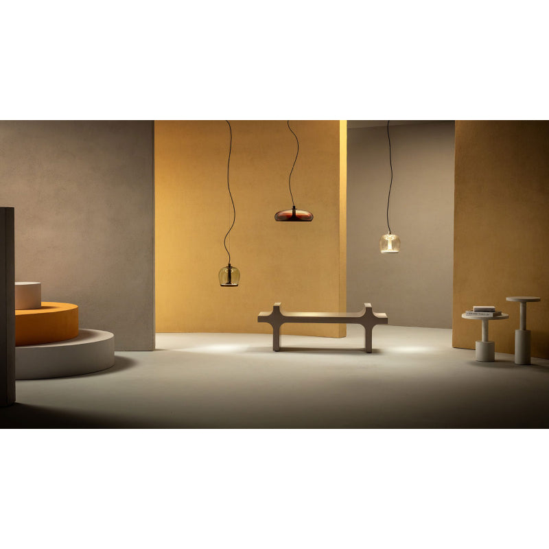Aurelia is a collection of suspension lamps designed by Patrick Jouin. The handblown glass diffuser surrounds the metal structure that houses two direct and indirect LED light sources.