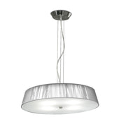 The Lilith Pendant is an elegant lighting solution with a stunning moiré light effect created by threading thin string in a consistent pattern across the shade in two layers. As you engage it from different viewpoints, the light pattern shimmers and changes. A satin white diffuser covers the bottom of the drum to minimize glare resulting is a dynamic diffused light for your space that is at once traditional but also contemporary.