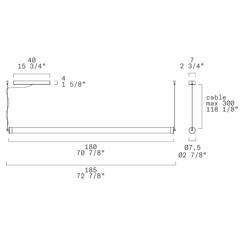 Leucos Stacking 180 1-lt 73" LED Naked Horizontal Pendant