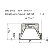 Lotus LD4R-IT 4" 15W LED Round Deep Regressed Plenum Rated Trimless Downlight, Dim to Warm 3000-1800K, 120V