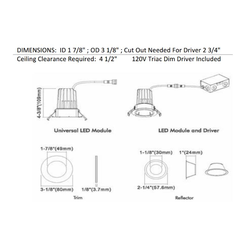 - Trim Color: White, Black, Brushed Nickel, Chrome, Bronze, Copper