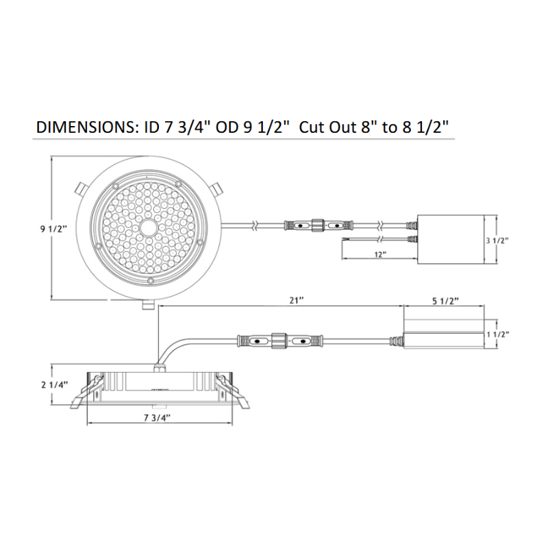 - Cutout: 8"-8.5"