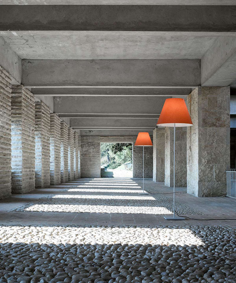 The new outdoor version is able to give light to terraces and garden with elegance and efficiency. Available with off-white, rust, or light green shade. Stem is white, rust or aluminium.