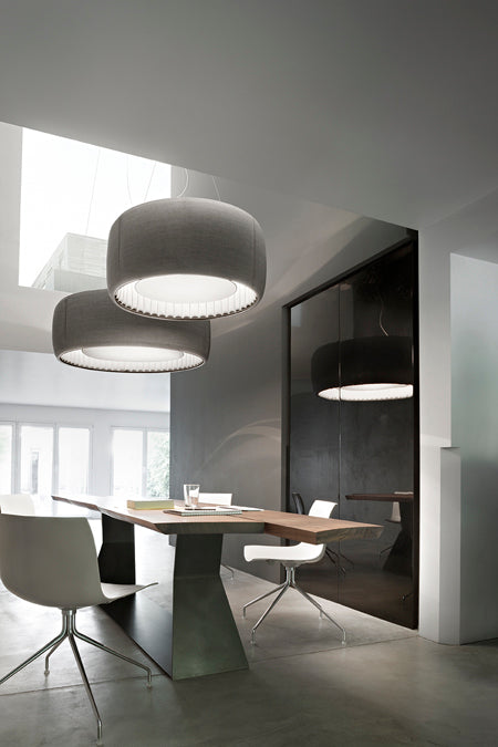 The quality of light combined with acoustic comfort and the beauty of Kvadrat fabrics. Silenzio is a lighting system that combines decor solutions with high sound absorption for public and private spaces.