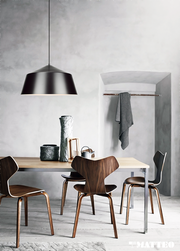 Unlike many other pendants which consist of softer or subtle appearances, the Encase series stands out among the crowd with its bright, chrome-like shade & white interior.