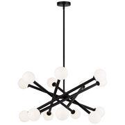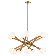 Matchstix chandelier will be a dramatic addition to any room. Modern movement in the crossing bar design will be a signature piece. Available in Aged Gold Brass or Black with either Clear or Opal glass.