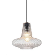 Vintage Inspired Diamond Textured Glass allows this otherwise simple pendant collection to be a design element in any room.The three classic shapes of this collection are offered in a smoke or clear glass. All of the pendants are finished with a Matte Black canopy and a black fabric wrapped cord. Use this singly or group multiples together to create a stunning statement.
