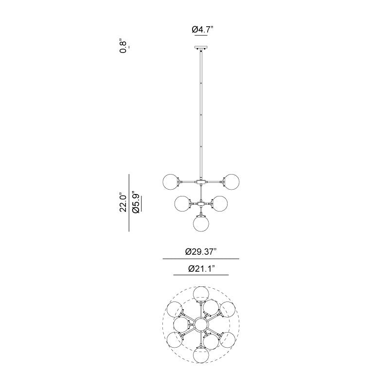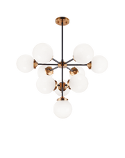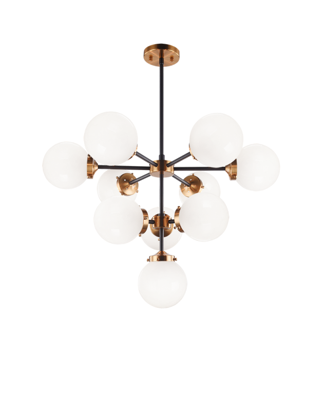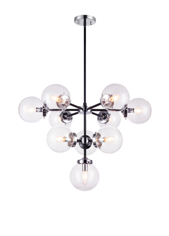 A Mid-Century style that will work with many décors. The series comes in two finishes, Aged Gold Brass and polished Chrome with Matte Black accents. The finished look can be completely different whether you choose opal glass or clear. The fixtures come with a 4-inch rod included so you can convert them to semi-flush pieces instead of a chandelier. This series can brighten any room with its timeless style and versatile design.