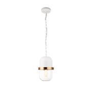 The Tillie series are stylish capsule inspired pendants. Comes in a White and Matte Black finish with Aged Gold Brass detailing that connects the Clear Glass or Opal Glass bottom. These versatile pendants are suitable for all spaces. Available in 2 sizes.