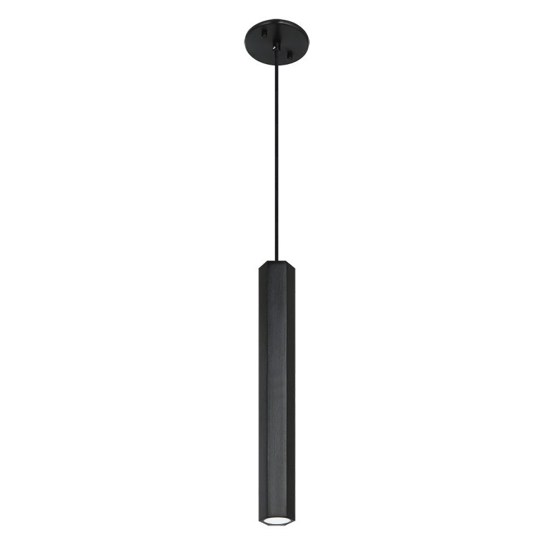 Designed using a hexagonal tube, the Rowan collection comes in an Aluminum and Oxidized Black finish with a black fabric cord.
