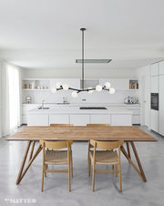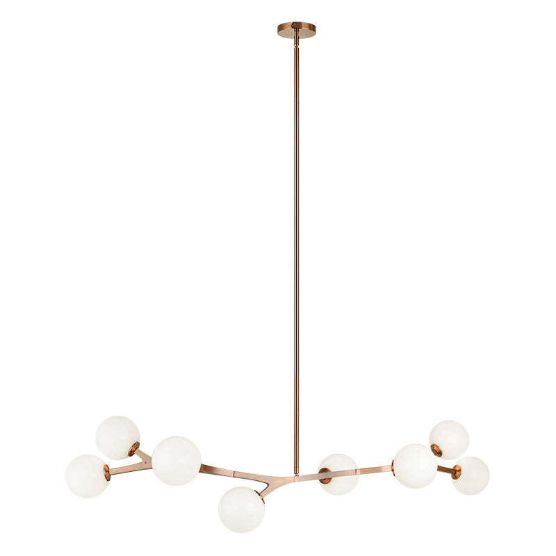 A mid-century inspired series that features branch-like elements with attached Opal Glass. The Rami is a stylish and graceful design that will bring refinement to any room.