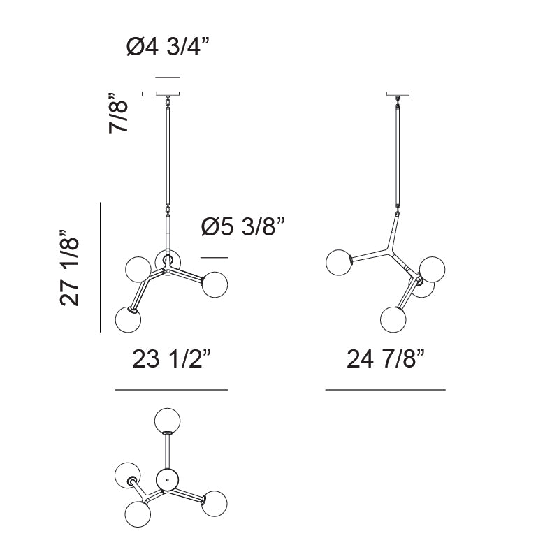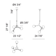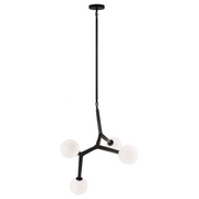 A mid-century inspired series that features branch-like elements with attached Opal Glass. The Rami is a stylish and graceful design that will bring refinement to any room. Available in the form of chandelier, wall sconce, and flush mount.