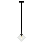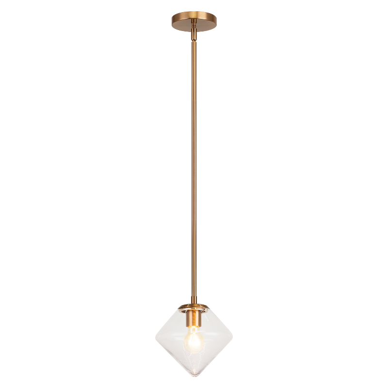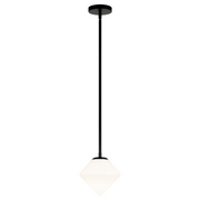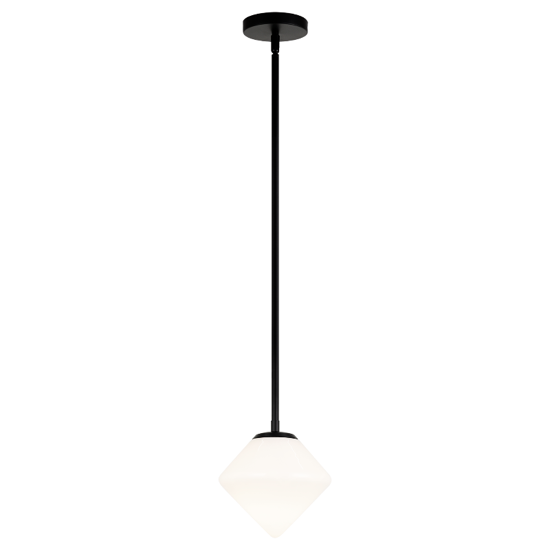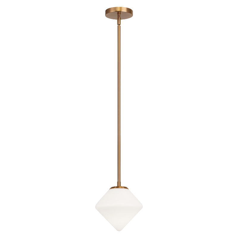 Novo is modern yet classic – available in the form of pendant, chandelier, wall sconce, and flush mount. The rods and base are either Aged Gold Brass or Black finish paired with a contrasting Opal or Clear round glass and diamond shaped glass. The style is very versatile and will add beauty to multiple rooms.