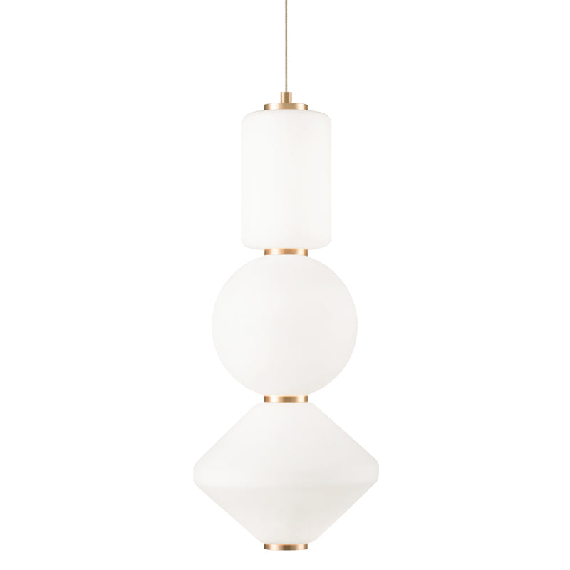 A unique series of pendants, Dango is comprised of opal glass in the form of geometric shapes. 2 styles will be available - all the same glass or a mixed glass version. Additional glass can be purchased separately to create a unique personalized fixture.