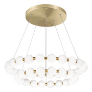 Oni is an elegant tasteful design inspired by the beauty of pearls. This stunning LED series features round Frosted Glass threaded together on an Oxidized Gold body. Silver cables attached to the Oxidized Gold canopy complete the refined look. Offered in 4 sizes.