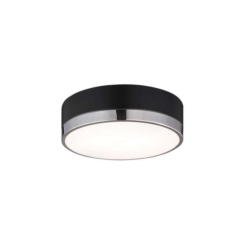 Trydor is an ultra modern take on the traditional flush mount with a higher profile.This two-tone series features a thick Black or White band with a thin contrasting finish of either Chrome or Aged Gold Brass. A versatile fixture, suitable for any room.