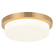 A bold LED with a larger rim and concave edge surrounding the extended white glass – the Durham will not go unnoticed in your room. Available in a 12 7/8” and 15 3/4” in Aged Gold Brass, Chrome or Matte Black.