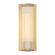 The Palmira is an exquisite wall sconce that comes in either Aged Gold Brass and Matte Black. The triangular shape and beautiful ribbed glass creates a gorgeous stand out statement piece.