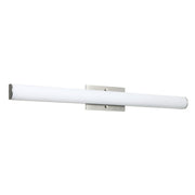 A minimal yet striking series of LED vanity comprised of a subdued metal canopy paired with a semi-cylindrical white acrylic lens