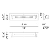 - Backplate: 18" W x 4 375" H x 0.25" E