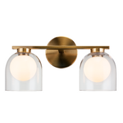 Derbishone, a striking vanity series with graceful dome shaped clear glass. Available in 4 different sizes and 2 finishes: Aged Gold Brass or Black. Charming addition to room.