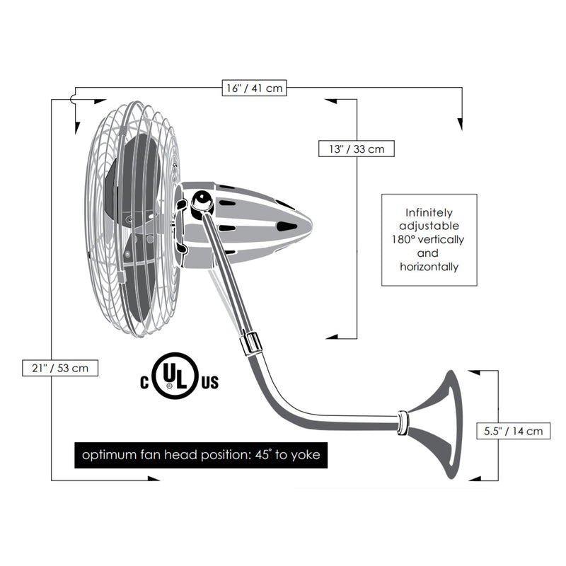 The blades of the Bruna Parede wall mounted fan can be infinitely positioned vertically and horizontally across 180-degree arcs to provide maximum directional airflow. It can be mounted in small, awkward spaces or in front of HVAC ducts to make more efficient the heating, ventilation or air conditioning of any room.