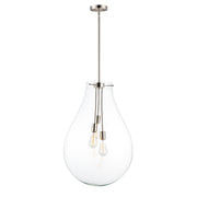 The crystal clear, large-scale glass pendants attest to the craft of hand-blown glass with their impressive scale. These hand crafted glass pendants embody simplicity and minimalism. Accented with Satin Nickel hardware, the style pairs well in a variety of settings.