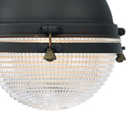 This nautical design features a solid dome of aluminum finished in Oil Rubbed Bronze with solid brass hardware finished in Antique Brass. The Clear prismatic glass diffuser completes the authentic look of this outdoor collection.
