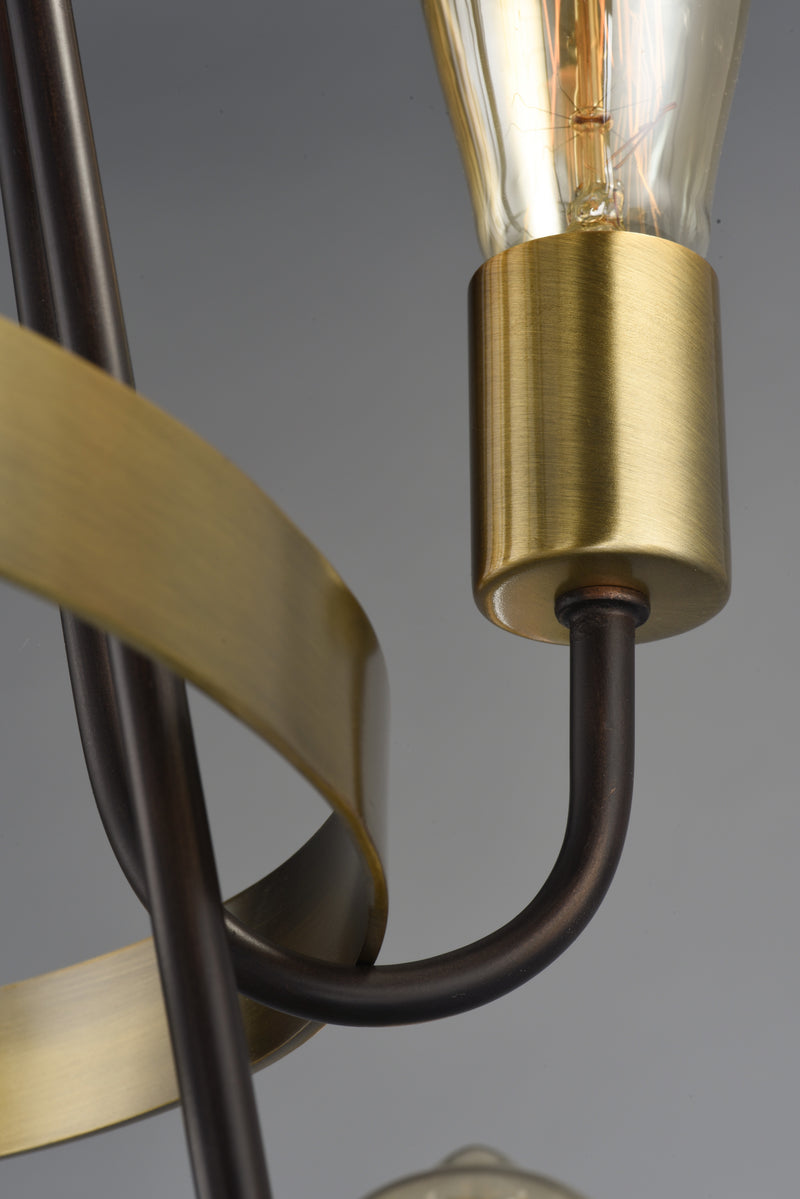 Arms that gracefully descend from a collector cradle a round metal band that can be removed for a minimalistic look. Available in two finish combinations: Black with Satin Nickel Accents and Oil Rubbed Bronze with Antique Brass accents.
