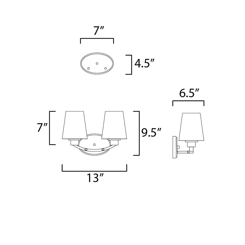 - 2 x 60W E26 Medium Base Incandescent (Not Included)