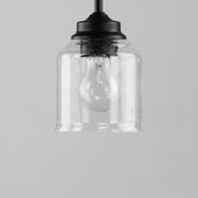 A clean and simple frame features arms that gently bend to support a Clear Seedy glass in a traditional bell shape. An easy choice for a transitional look, available in matte Black or Satin Nickel.