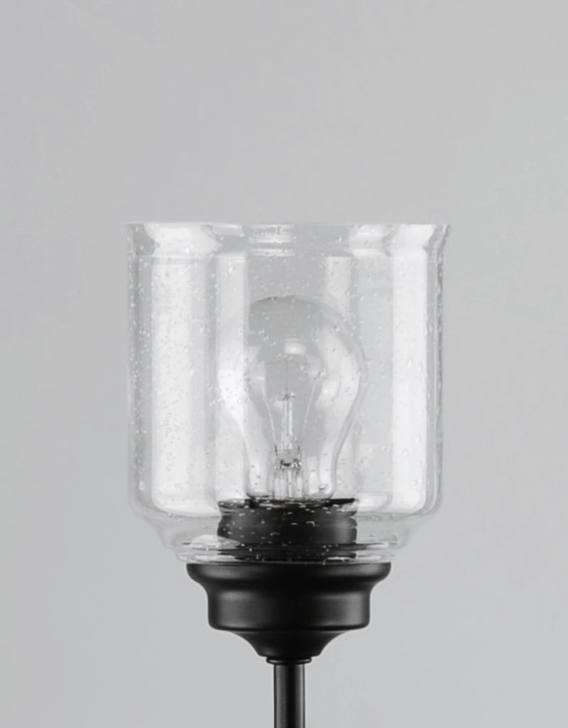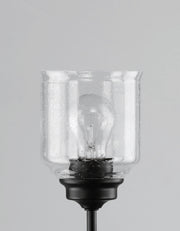 A clean and simple frame features arms that gently bend to support a Clear Seedy glass in a traditional bell shape. An easy choice for a transitional look, available in matte Black or Satin Nickel.