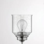 A clean and simple frame features arms that gently bend to support a Clear Seedy glass in a traditional bell shape. An easy choice for a transitional look, available in matte Black or Satin Nickel.