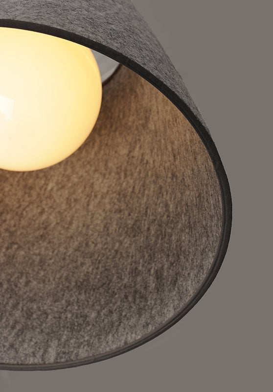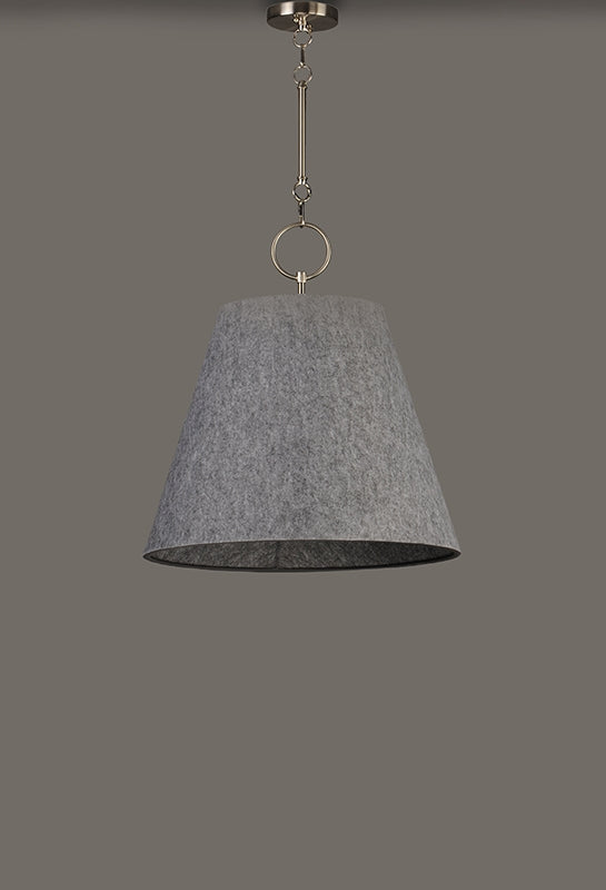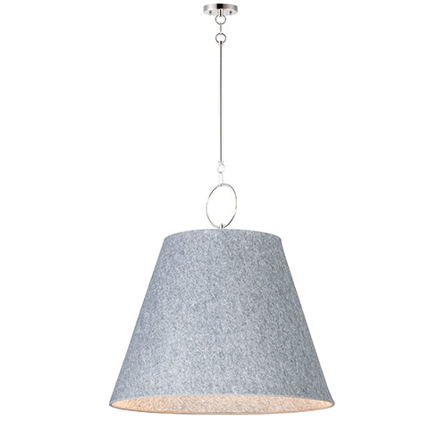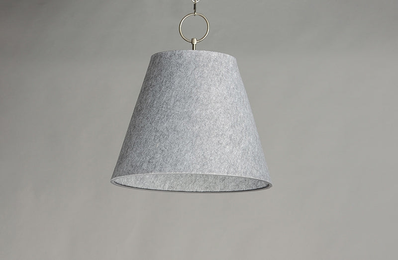 Theses large scale shades are constructed of sound absorbing felt reducing ambient noise in the environments where they are hung. The Felt pendants include an opal glass interior globe shade to cover either LED or incandescent lamping.