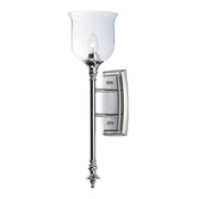 Traditional fonts of Polished Nickel support Clear glass shades reminiscent of Colonial times. This ageless design has upscale appeal at an attractive price.
