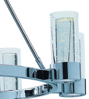 Rods of bubble glass are encased inside a Clear glass cylinder, which are supported in a cast Polished Chrome frame. Dual LED modules bring the bubble glass to life, while also providing ample illumination to the surface below.