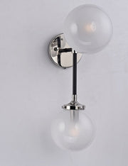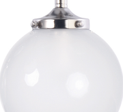 A Mid-Century Modern industrial classic revived featuring softly bent arms finished in Black with Polished Nickel accents that terminate at round White opal glass balls.