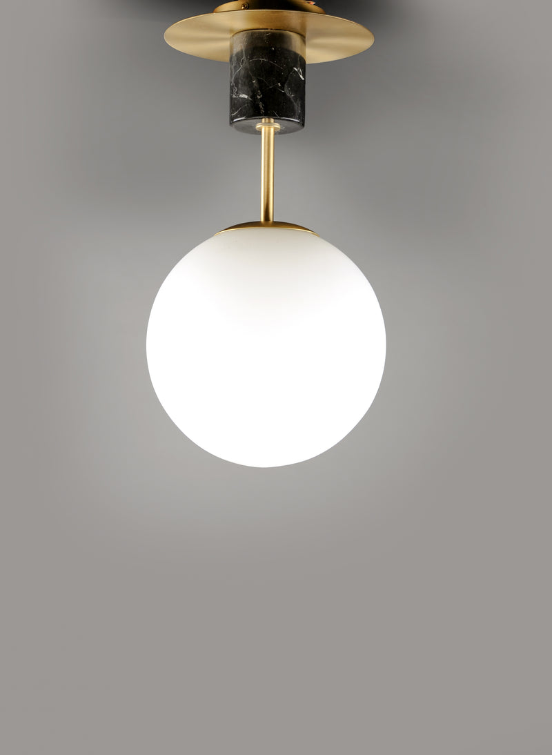 Inspired by both Mid Century Modern and Scandinavian Contemporary this collection spans a large breadth of today's interior design. Straight tubing finished in Satin Brass supports hand blown Satin White cased glass globes.