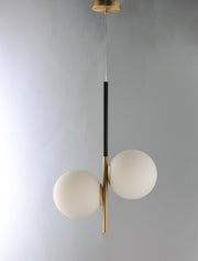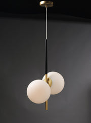 Inspired by both Mid Century Modern and Scandinavian Contemporary this collection spans a large breadth of today's interior design. Straight tubing finished in Satin Brass supports hand blown Satin White cased glass globes.