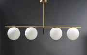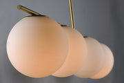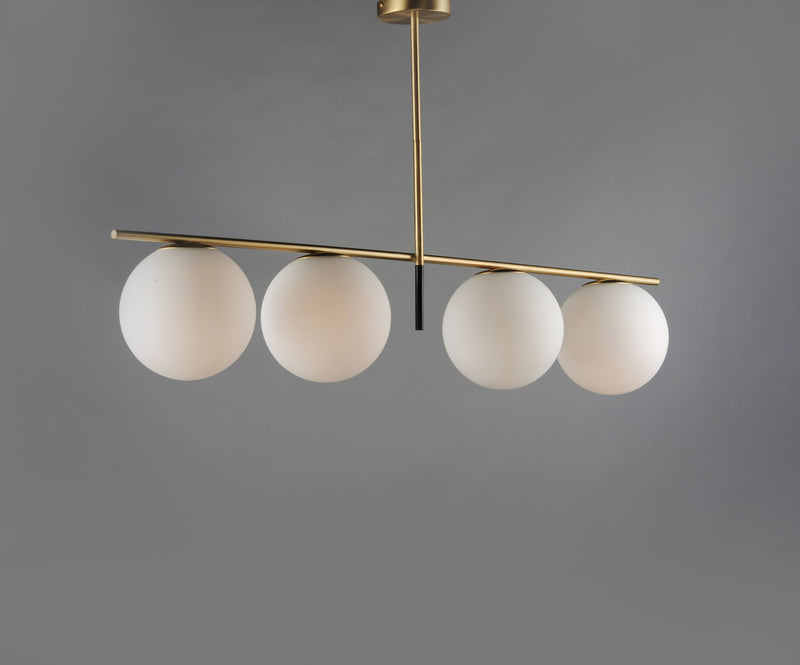 Inspired by both Mid Century Modern and Scandinavian Contemporary this collection spans a large breadth of today's interior design. Straight tubing finished in Satin Brass supports hand blown Satin White cased glass globes.