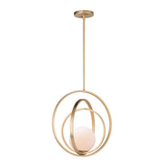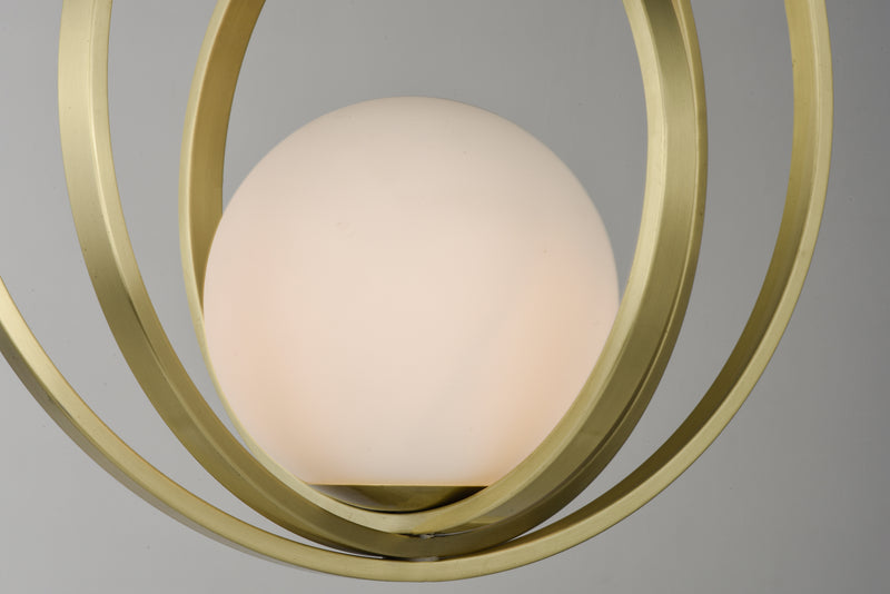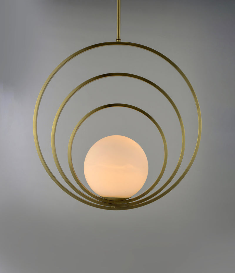 Adjustable rings available in Satin Brass add dimension to this contemporary pendant design.